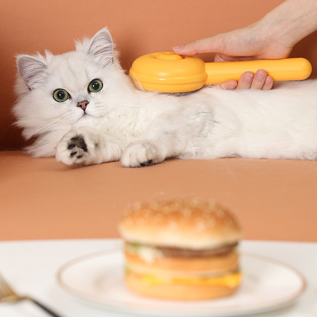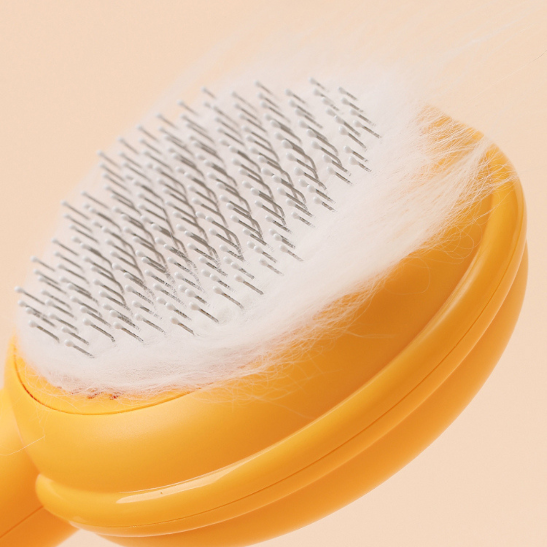 Simplify Cat Grooming with our Self-Cleaning Comb Brush With the push of a button, the comb effortlessly disposes of trapped hair, saving you time and effort.